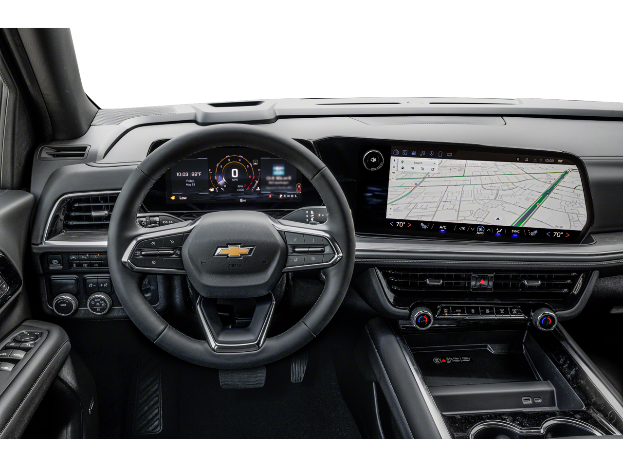 COMFORT PACKAGE includes (A45) memory settings, (UQS) Bose 10-speaker Surround with CenterPoint, (DXR) outside heated power-adjustable, power-folding, body-color mirrors with driver-side auto-dimming and integrated turn signal indicators, (KI3) heated steering wheel, (KA6) second row outboard heated seats, (ATT) second row power 60/40 split-folding bench seats, (AS8) third row power 60/40 split-folding bench seats, (TGE) LED animated headlamps and (TAU) LED animated tail lamps (Also includes (WPL) Luxury Package content. WHEELS, 20" X 9" (50.8 CM X 22.9 CM) MACHINED ALUMINUM WIT CHARCOAL POCKETS, SEATS, SECOND ROW BUCKET, POWER RELEASE, ENGINE, 5.3L ECOTEC3 V8 with Dynamic Fuel Management, Direct Injection and Variable Valve Timing, includes aluminum block construction (355 hp [265 kW] @ 5600 rpm, 383 lb-ft of torque [518 Nm] @ 4100 rpm) (STD), TRANSMISSION, 10-SPEED AUTOMATIC electronically controlled with overdrive, includes Traction Select System including tow/haul (STD), AUDIO SYSTEM, 17.7" DIAGONAL ADVANCED COLOR LCD DISPLAY with Google built-in compatibility (select service plan required, terms and limitations apply), including navigation capability, connected apps, personalized profiles for each driver's settings, Natural Voice Recognition and Phone Integration (STD), LUXURY PACKAGE includes (DD8) Inside rearview auto-dimming mirror, (UG1) Universal Home Remote and (T40) LED front fog lamps, ADVANCED TRAILERING PACKAGE includes (UKW) Blind Zone Steering Assist with Trailering, (PZ8) Hitch View and (UET) Smart Trailer Integration Indicator. Chevrolet LT with Radiant Red Tintcoat exterior and Jet Black interior features a 8 Cylinder Engine with 355 HP at 5600 RPM*.