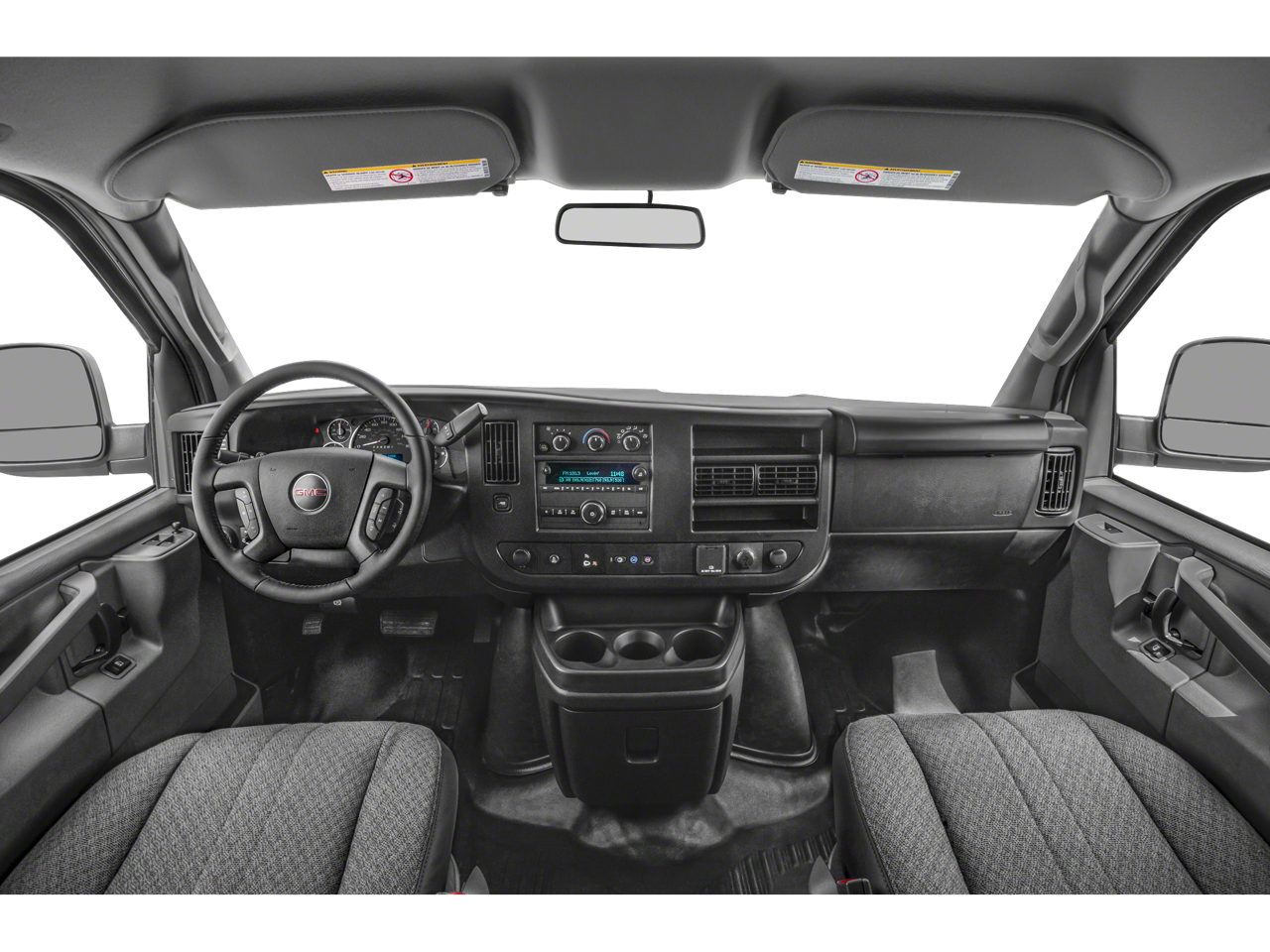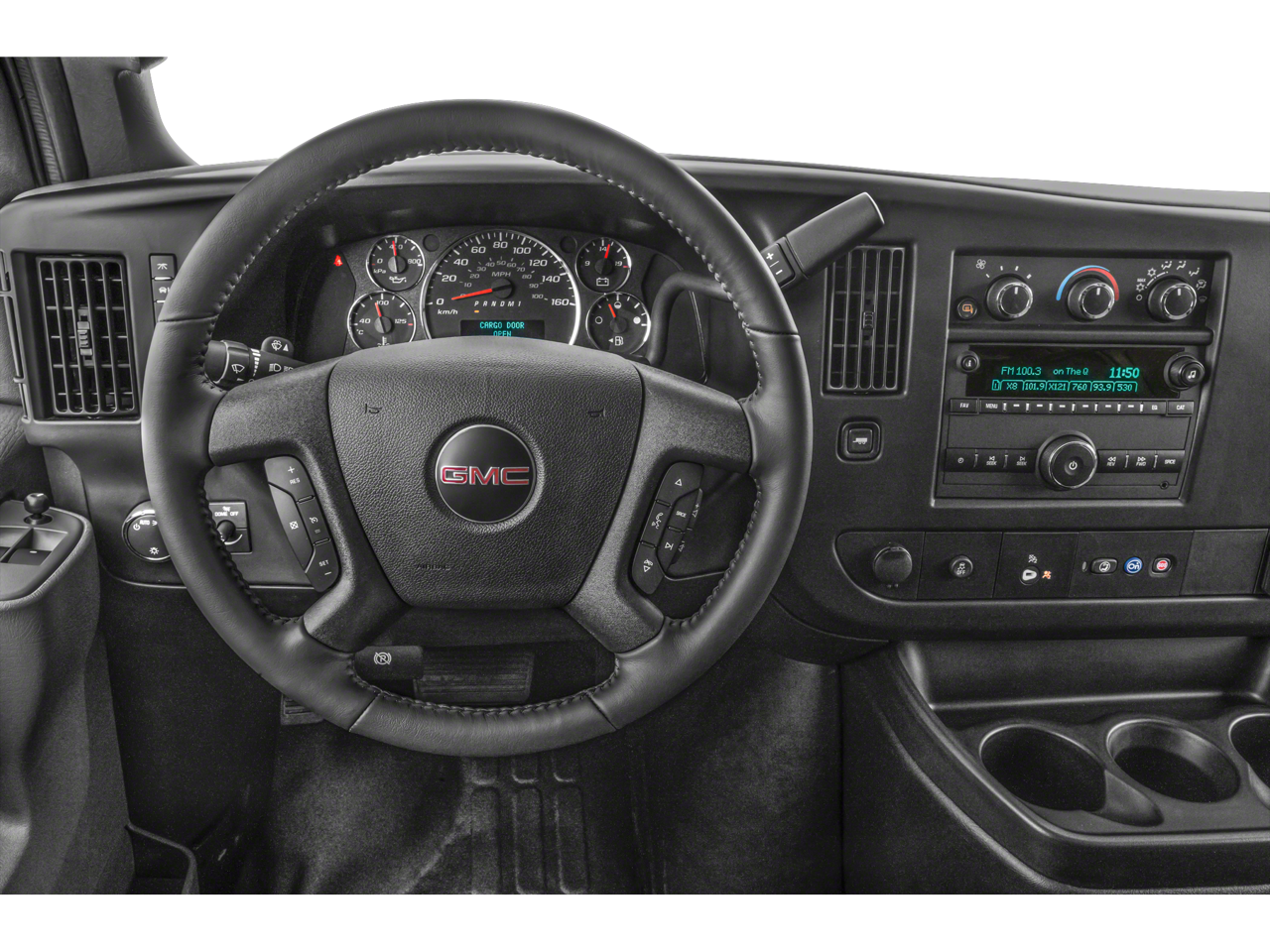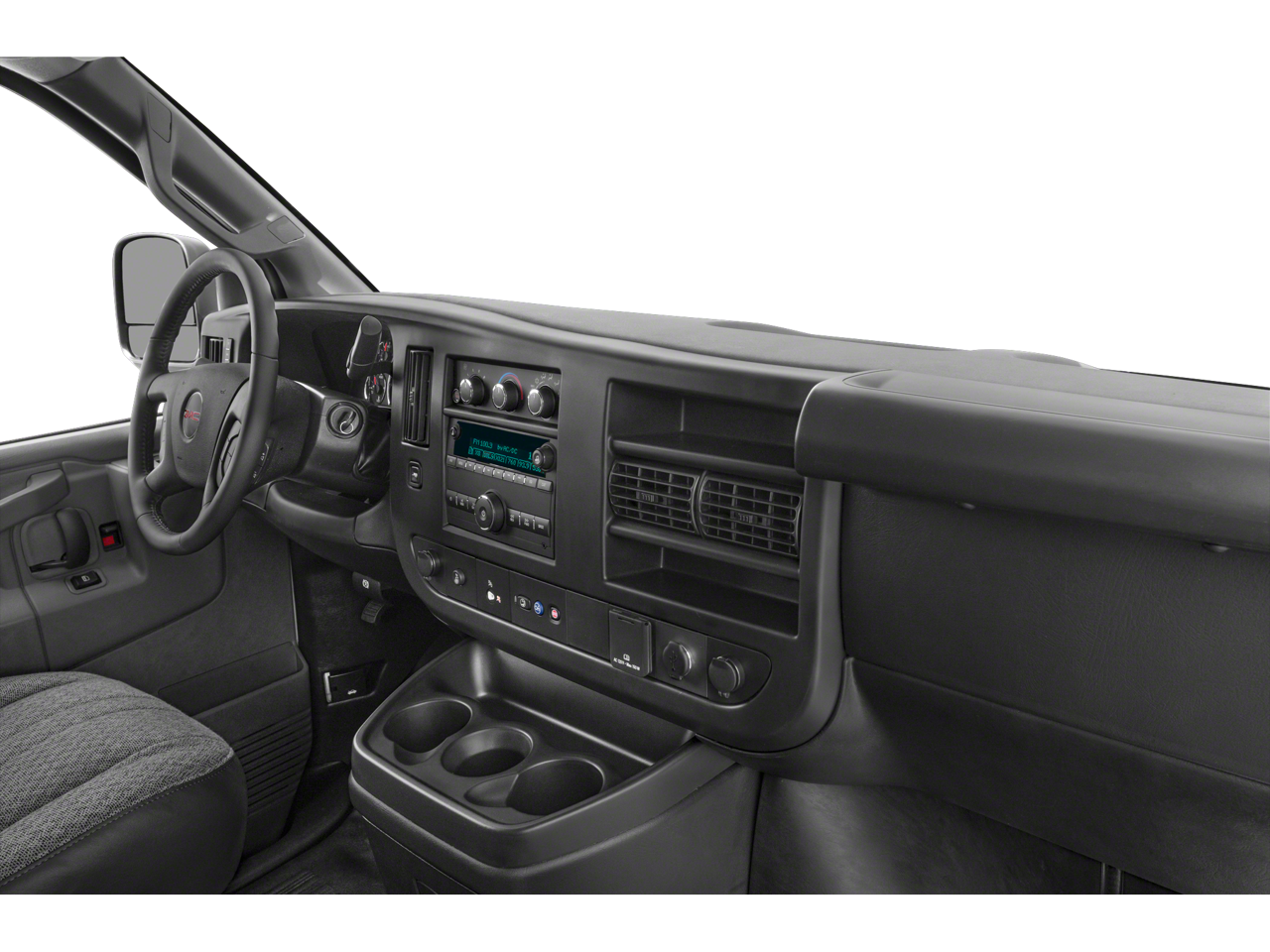 DRIVER CONVENIENCE PACKAGE includes Tilt-Wheel and (K34) cruise control, ENGINE, 4.3L V6 with Direct Injection and Variable Valve Timing, includes aluminum block construction (276 hp [206 kW] @ 5200 rpm, 298 lb-ft of torque [404 Nm] @ 3900 rpm) (STD), TRANSMISSION, 8-SPEED AUTOMATIC, ELECTRONICALLY CONTROLLED with overdrive and tow/haul mode. Includes Cruise Grade Braking, Powertrain Grade Braking and Tap-Up/Tap-Down Driver Shift Control (STD), AUDIO SYSTEM, AM/FM STEREO WITH MP3 PLAYER seek-and-scan, digital clock, TheftLock, random select, auxiliary jack and 2 front door speakers (STD). GMC Savana Cargo Van with SUMMIT WHITE exterior and CLOTH, JET BLACK/MED DK PEWTER interior features a V6 Cylinder Engine with 276 HP at 5200 RPM*.
