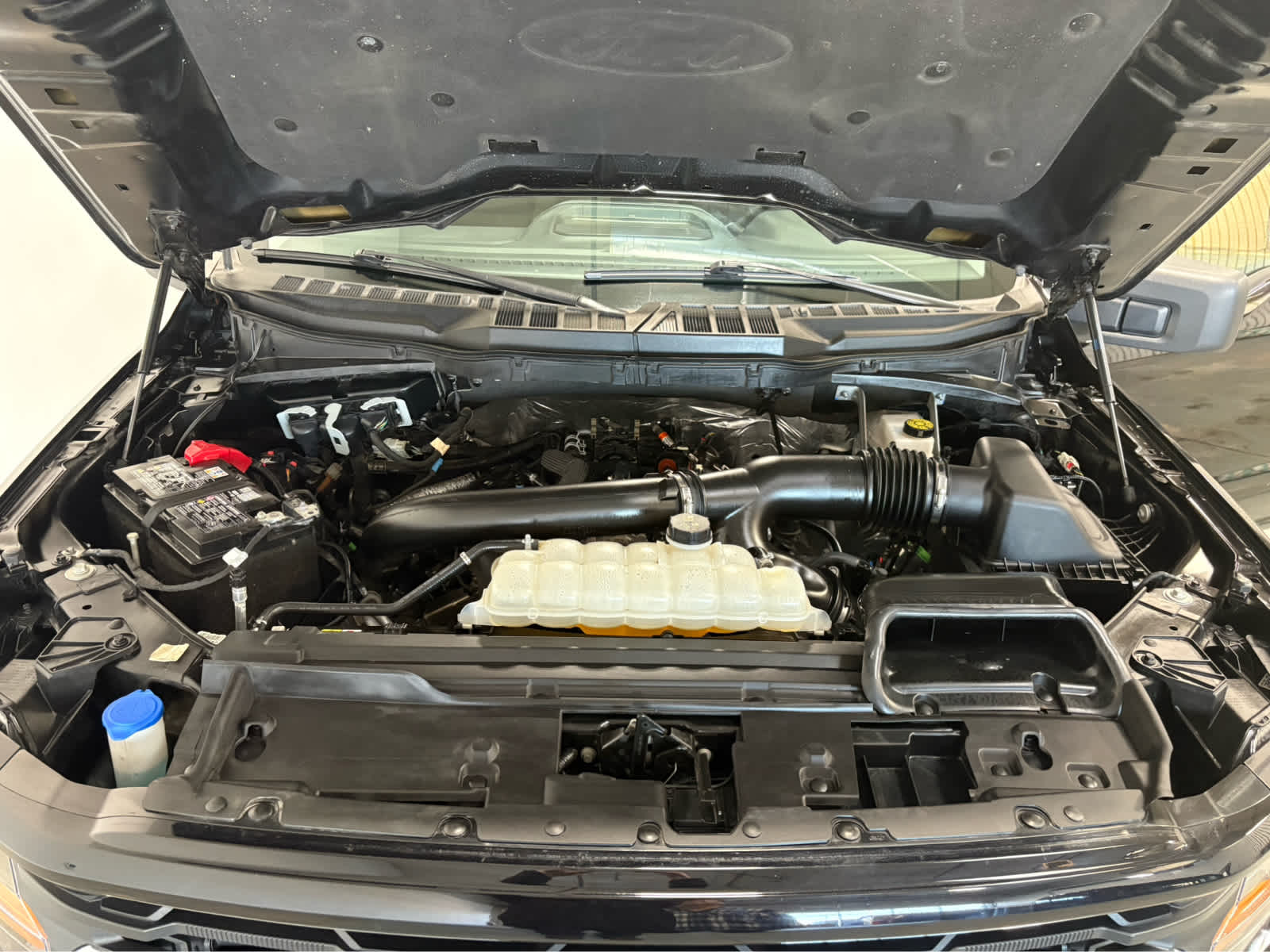 auto start-stop technology, 3.31 Axle Ratio, GVWR: 7,100 lbs Payload Package, Chrome Door & Tailgate Handles, Wrapped Steering Wheel, Black Painted Grille w/Chrome Center Bar, coast to coast black mesh, Dual-Zone Electronic Automatic Temperature Control, (DEATC), 6" Angular Bright Anodized Step Bar, Chrome Single-Tip Exhaust, SelectShift w/progressive range select and selectable drive modes: normal, ECO, sport, tow/haul, slippery, deep snow/sand and mud/rut (STD). Ford XLT with Agate Black Metallic exterior and Medium Dark Slate interior features a V6 Cylinder Engine with 325 HP at 5000 RPM*.